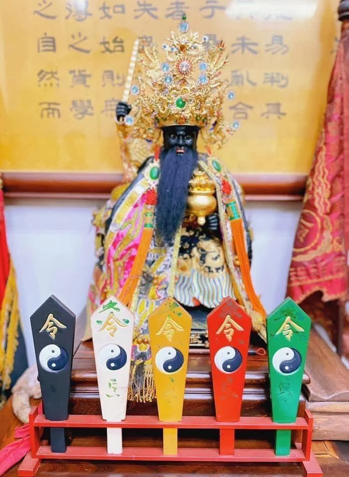 本宮武財神當時降下時,指示需要雕刻五尊虎爺(金紅綠黑白),必要配五方令牌,每一色都代表著每一方位(路)的財神爺。